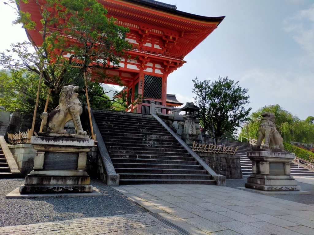 清水寺正門・仁王門前の狛犬が双方とも開口している事です。