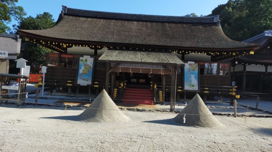 200mの参道はゆったりとしていますが、境内は思ったよりコンパクトです。 細殿前の立砂(たてすな)は上賀茂神社のご祭神である、 賀茂別雷大神(かもわけいかづちのおおかみ)が降臨されたという神山(こうやま)の形を模しています。 2つの立砂は陰 […]