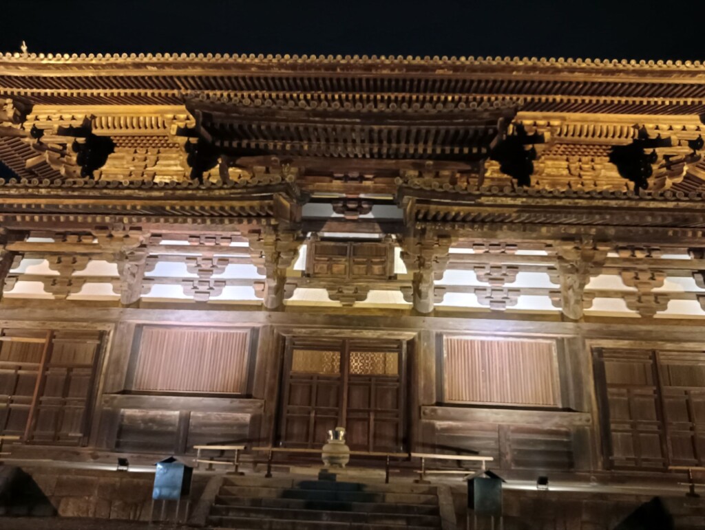 国宝の金堂には薬師如来さんが安置され、左右には月光、日光菩薩が付き従っています。