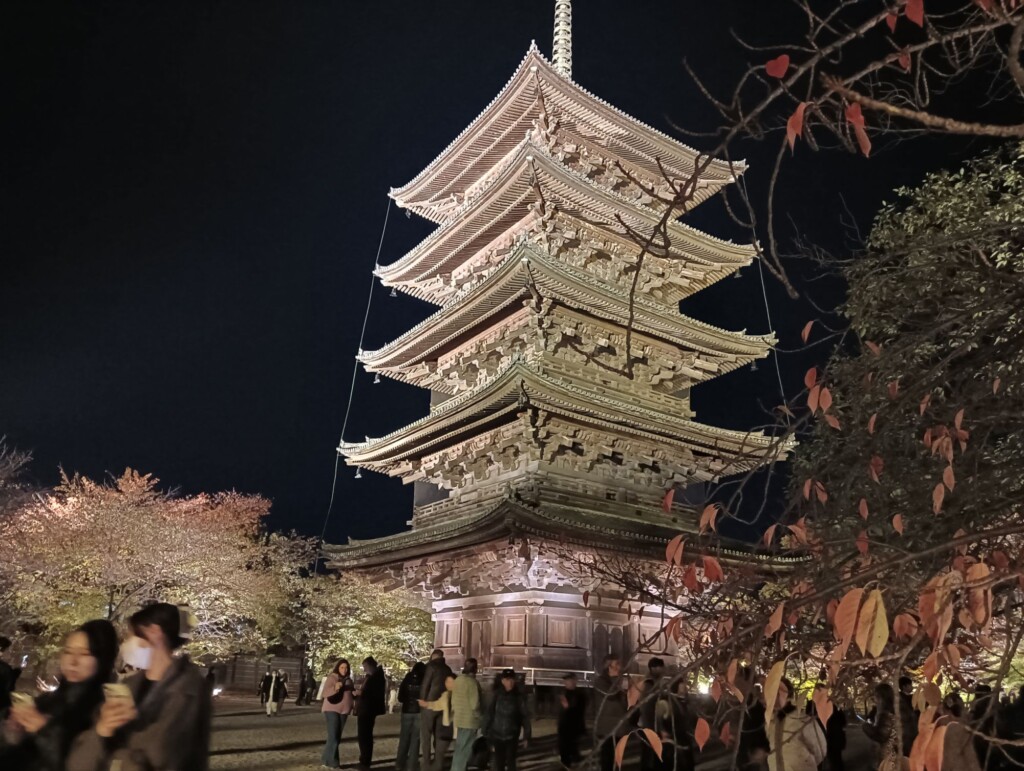 もとをとったのですが、なんか物足りず夕食後に何十回と訪れている東寺のライトアップを見に外出。